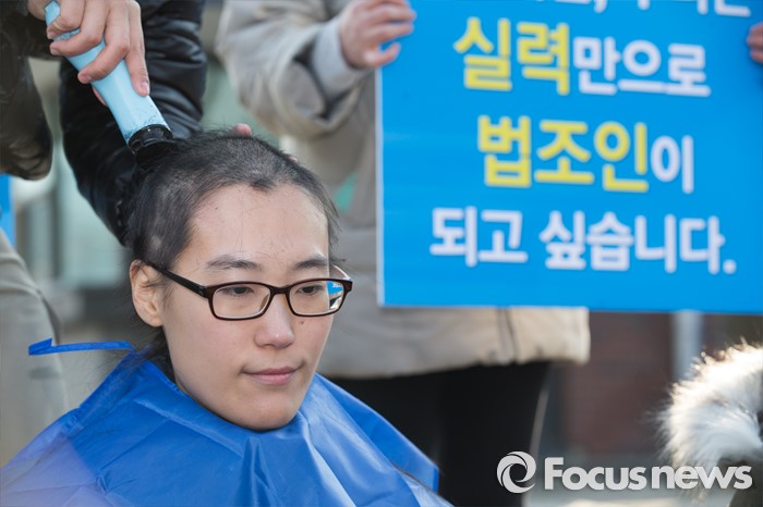 앞서 한 언론사는 28일 ‘제 아들 원서냈어요, 알죠? 수상한 로스쿨’이라는 기사를 통해 경북대 로스쿨 부정입학 논란과 교육부의 전수조사 등을 보도했다.지난해 12월 서울대학교 정문에서 고시생 박원호씨가 사시존치를 주장하며 삭발하고 있다. 2015.12.07 오장환 기자