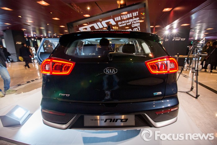 (서울=포커스뉴스) 29일 오전 서울 광진구 쉐라톤 그랜드 워커힐에서 기아차 친환경 소형 SUV '니로(NIRO)'가 공개돼고 있다.