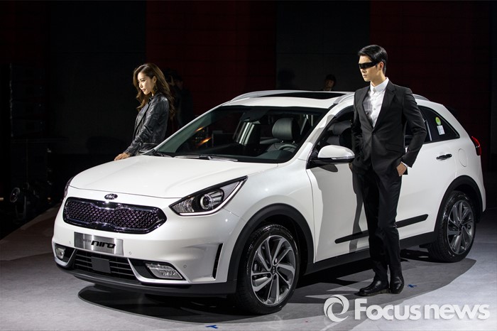 (서울=포커스뉴스) 29일 오전 서울 광진구 쉐라톤 그랜드 워커힐에서 기아차 친환경 소형 SUV '니로(NIRO)'가 공개돼고 있다.