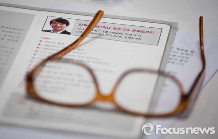 (서울=포커스뉴스) 29일 오전 안철수 국민의당 상임공동대표가 서울 중구 한국프레스센터에서 '안철수 국민의당 공동대표 초청 관훈토론회'를 하고 있는 가운데 객석 테이블 위에 토론회 식순과 안 대표의 이력이 적힌 종이가 놓여져 있다