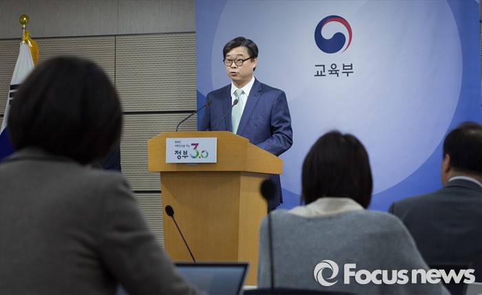 (세종=포커스뉴스) 김영수 한국교육과정평가원장이 29일 오전 세종시 정부세종청사 교육부 공용브리핑실에서 한국사 필수 등의 내용을 담은 2017학년도 대학수학능력시험 시행 기본계획을 발표하고 있다. 2017학년도 대학수학능력시험은 오는 11월 17일로 확정됐다.