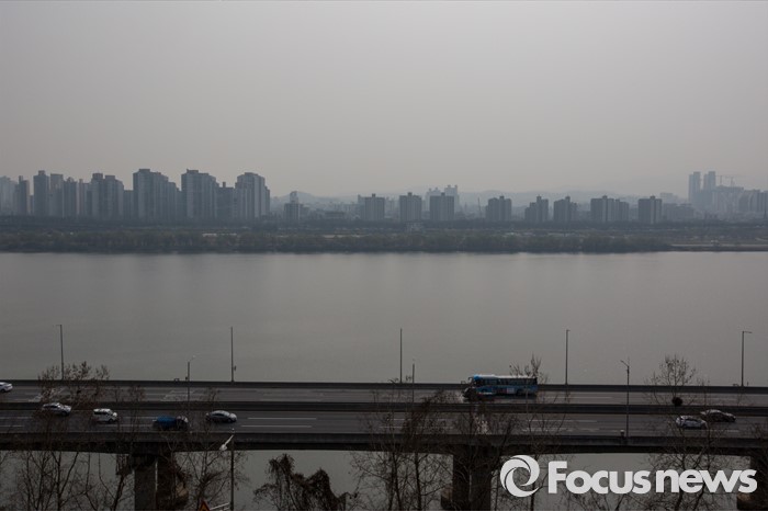(서울=포커스뉴스) 국외 미세먼지 유입으로 '나쁨' 수준의 농도가 전 권역서 나타나고 있는 29일 오후 서울 광진구에서 바라본 도심이 미세먼지에 싸여 있다.