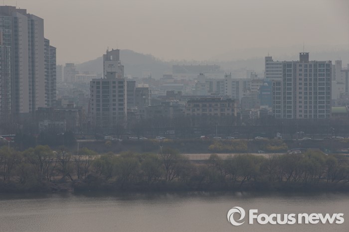 (서울=포커스뉴스) 국외 미세먼지 유입으로 '나쁨' 수준의 농도가 전 권역서 나타나고 있는 29일 오후 서울 광진구에서 바라본 도심이 미세먼지에 싸여 있다.