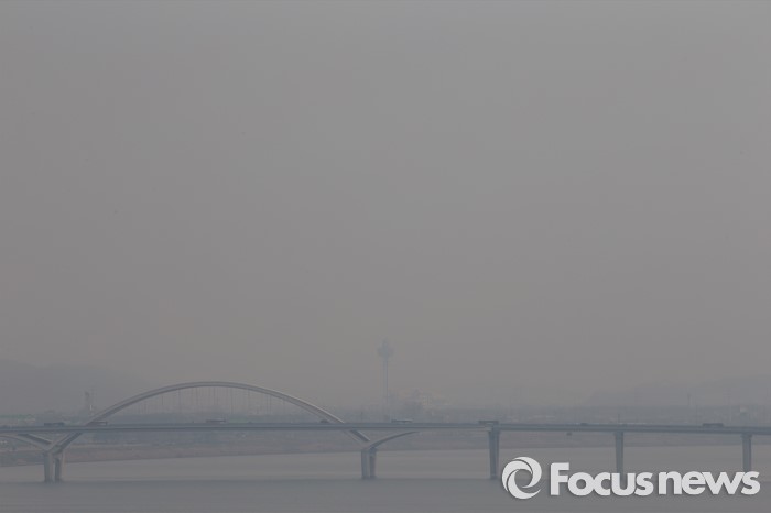 (서울=포커스뉴스) 국외 미세먼지 유입으로 '나쁨' 수준의 농도가 전 권역서 나타나고 있는 29일 오후 서울 광진구에서 바라본 도심이 미세먼지에 싸여 있다.