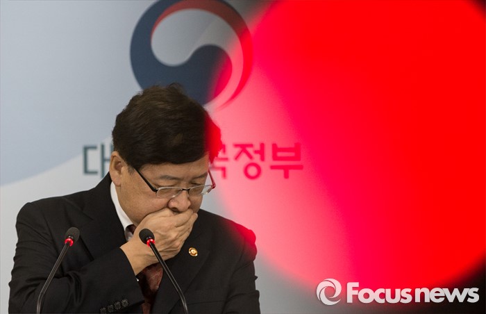 (서울=포커스뉴스) 29일 오전 서울 종로구 정부서울청사에서 정진엽 보건복지부 장관이 '관계부처 합동 아동학대 방지 대책'에 대해 발표 도중 기침을 하고 있다.