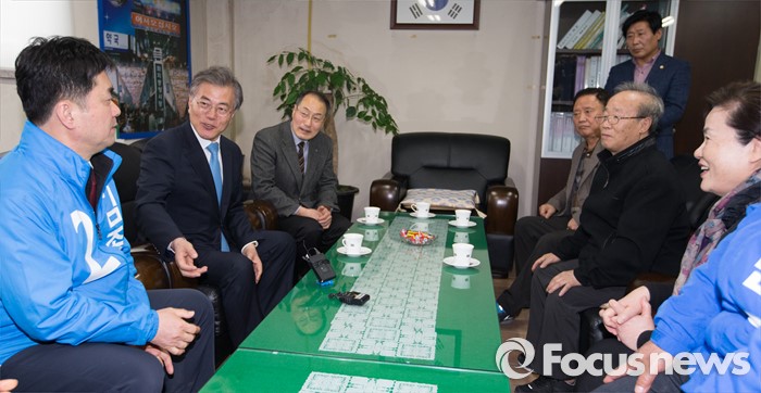 (논산=포커스뉴스) 문재인 더불어민주당 전 대표가 29일 오후 충남 논산시 중앙시장을 방문해 상인연합회와 간담회를 갖고 있다.