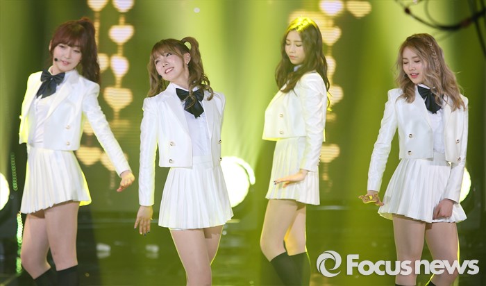 (서울=포커스뉴스) 29일 오후 서울 마포구 SBS프리즘 타워에서 열린 2016 '더쇼' 생방송에 참여한 걸그룹 블루미의 멤버들이 '너 때문이야'의 무대를 선보이고 있다.