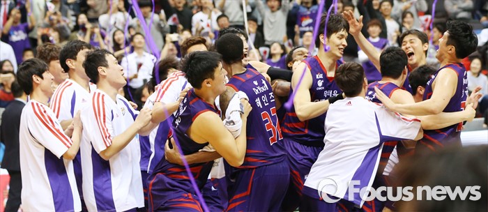(고양=포커스뉴스) 29일 고양체육관에서 열린 2015-2016 프로농구 챔피언결정전 6차전을 승리하며 우승한 오리온 선수들이 경기 종료와 동시에 함께 뒤엉키며 환호하고 있다.