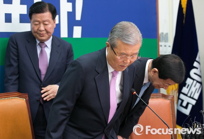(서울=포커스뉴스) 김종인(가운데) 더불어민주당 비대위 대표 겸 선대위원장과 이근식(왼쪽), 진영 부위원장이 30일 오전 서울 여의도 국회에서 열린 중앙선거대책위원장단회의에 참석하고 있다.