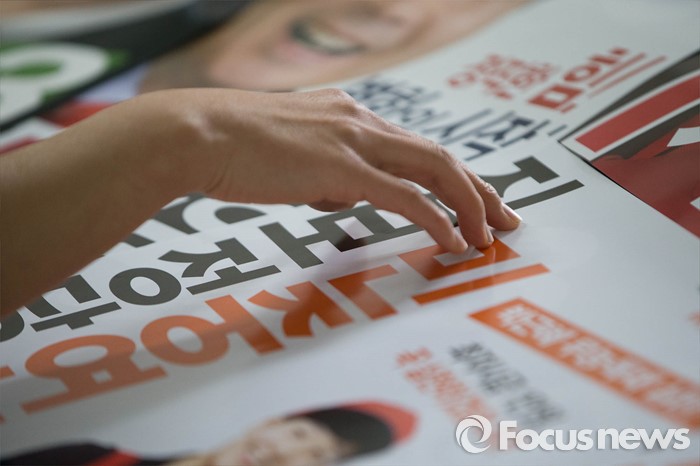 (서울=포커스뉴스) 20대 총선 공식선거 운동을 하루 앞둔 30일 오전 서울 종로구 중구 선거관리위원회 사무실에서 직원들이 선거 벽보 확인 및 정리 작업을 하고 있다.