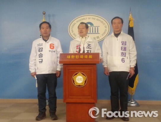 임태희(성남 분당을) 강승규(서울 마포갑) 조진형(인천 부평갑) 무소속 후보는 30일 서울 여의도 국회 정론관에서 공동 기자회견을 열고 '무소속 연대'를 공식 선언했다. 이들 3명의 후보는 새누리당 고유 색깔이었던 빨간색을 벗고 하얀색 점퍼를 맞춰 입고 정론관에 들어왔다.