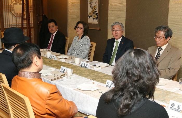 (서울=포커스뉴스) 김종덕 문화체육부장관이 30일 서울 광화문 인근의 한 식당에서 한국 문학 발전을 이끌어온 문학계 원로들과 한국문학의 중장기 발전방안을 논의하기 위한 간담회에 참석해 인사말을 하고 있다.