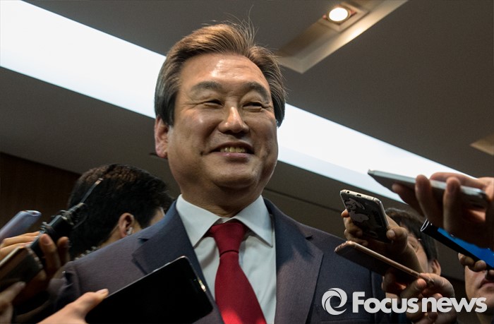 (서울=포커스뉴스) 30일 오후 서울 중구 프레스센터에서 열린 관훈클럽 초청 관훈토론회를 마친 김무성 새누리당 대표가 엘리버이터로 발걸음을 옮기며 취재진의 질문을 받고 있다.