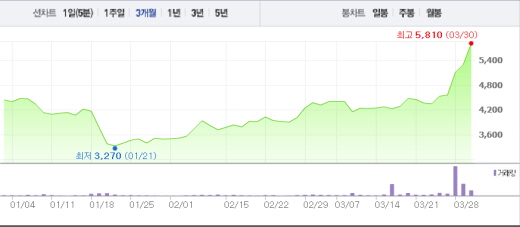 플라스틱 합성피혁 제조업체인 진양화학도 3일 연속 상승세를 나타내고 있다. 진양화학은 전일 대비 4.86%(350원) 상승한 7550원에 거래를 마쳤다. 3월 2일 3200원에 불과했던 주가는 현재 2.3배 이상 오른 상태다.