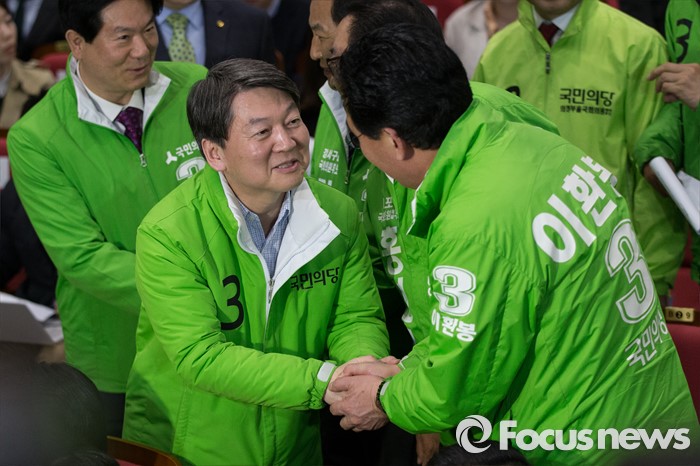 (서울=포커스뉴스) 안철수 국민의당 상임공동대표가 30일 오후 서울 여의도 국회에서 열린 총선 승리를 위한 국민의당 수도권 후보 출정식에 참석해 후보들과 인사를 나누고 있다.