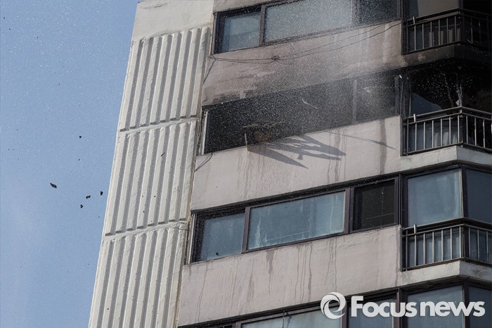 (서울=포커스뉴스) 30일 오후 2시께 서울 서초구의 한 아파트에서 원인모를 불이나 소방관들이 진화작업을 하고 있다.