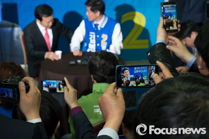 (성남=포커스뉴스) 손학규 전 더불어민주당 상임고문이 30일 오후 경기도 성남시 김병욱 더민주당 분당을 후보 선거사무소을 방문해 김후보와 이야기를 나누고 있다.