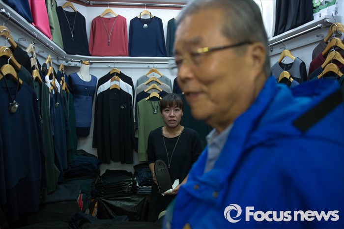 (서울=포커스뉴스) 김종인 더불어민주당 대표가 4.13총선 공식선거운동 첫날인 31일 오전 서울 중구 동대문에 위치한 한 쇼핑몰에서 상인들을 상대로 선거운동을 하고 있다.