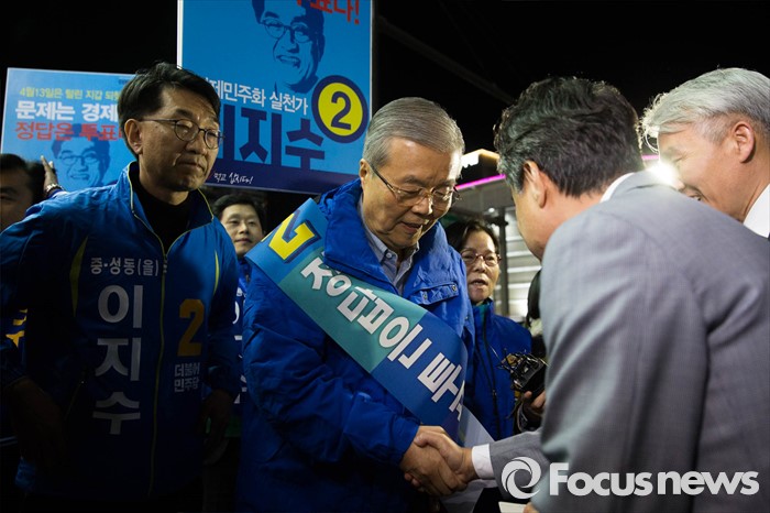 (서울=포커스뉴스) 김종인 더불어민주당 대표가 4.13총선 공식선거운동 첫날인 31일 오전 서울 중구 동대문에 위치한 한 쇼핑몰관계자들을 만나 인사를 나누고 있다.