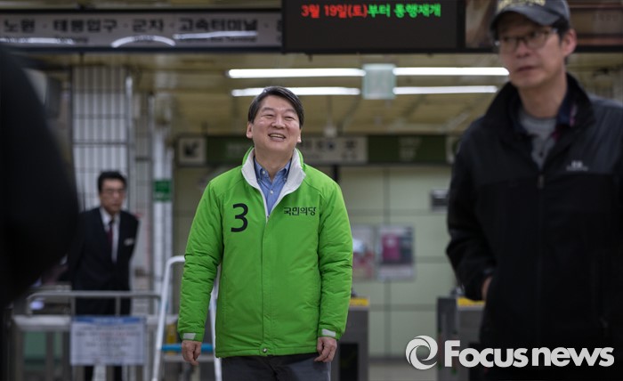 (서울=포커스뉴스) 총선 선거운동이 공식적으로 시작된 31일 오전 안철수 국민의당 노원병 후보가 서울 노원구 수락산역 역사 내에서 지역 주민들에게 출근 인사를 하고 있다.
