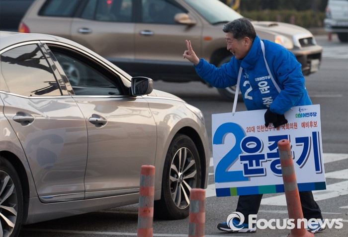 (인천=포커스뉴스) 제20대 총선 선거운동이 공식적으로 시작된 31일 오전 인천 연수구 한 사거리에서 윤종기 더불어민주당 연수을 후보가 출근하는 시민들에게 인사하며 지지를 호소하고 있다.