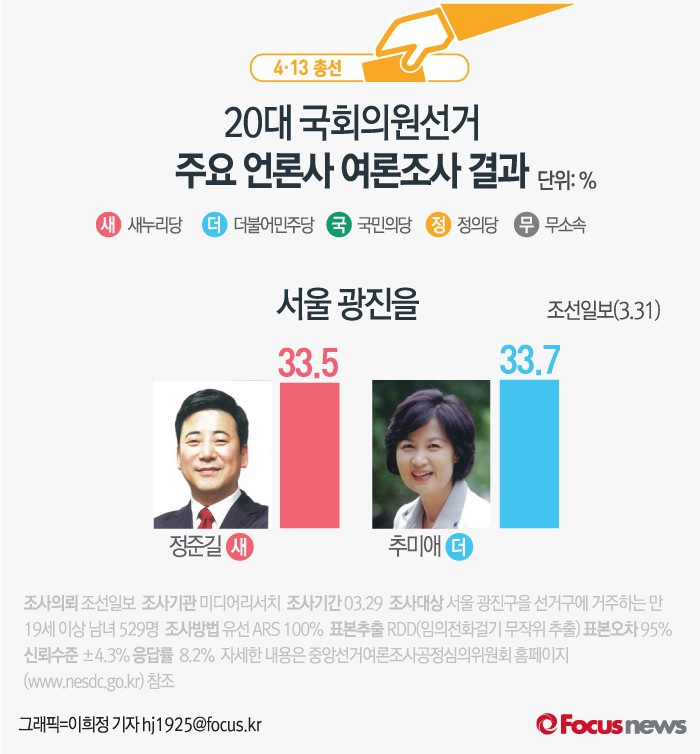 | △ [그래픽] 4.13총선 서울 광진을 여론조사결과 |