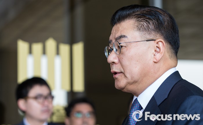 (서울=포커스뉴스) 용산 국제업무지구 개발 관련 금품수수 혐의를 받고 있는 허준영 전 코레일 사장이 31일 오전 서울중앙지검에 출두, 준비한 원고를 읽고 있다.