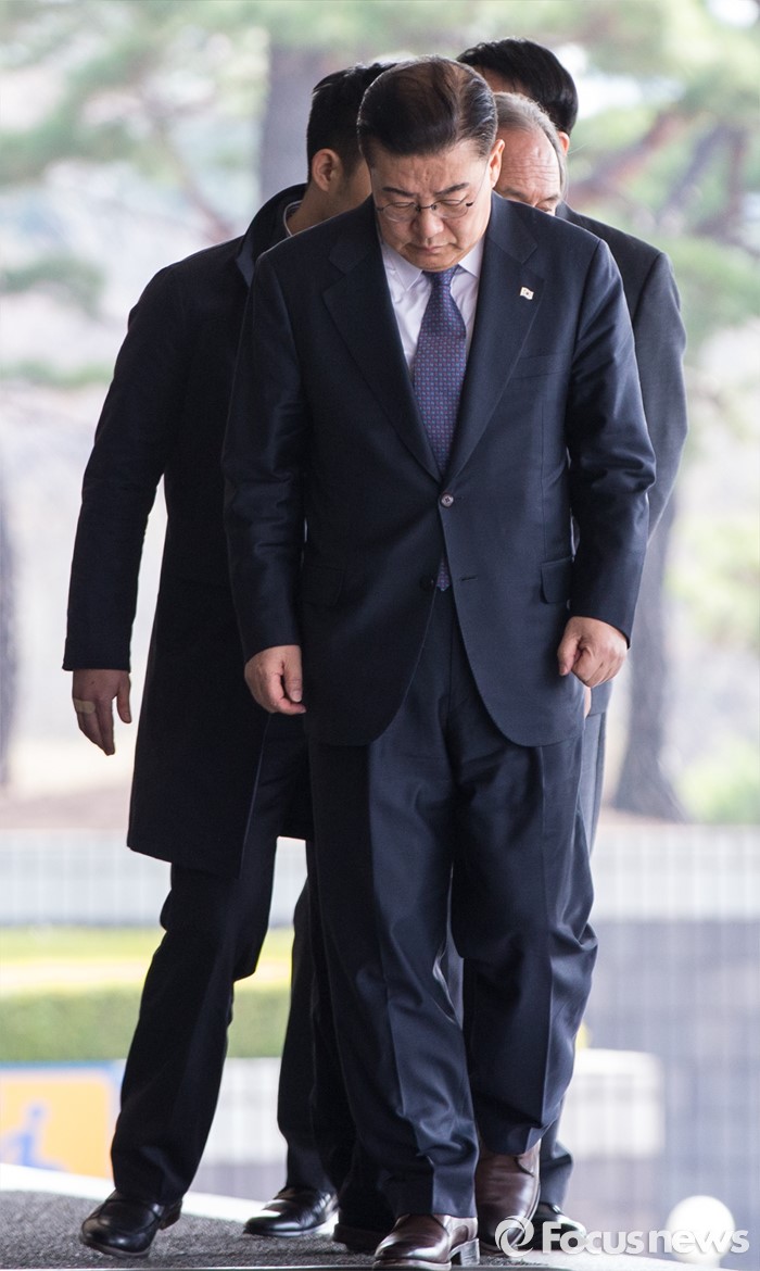 (서울=포커스뉴스) 용산 국제업무지구 개발 관련 금품수수 혐의를 받고 있는 허준영 전 코레일 사장이 31일 오전 서울중앙지검에 출두하고 있다.