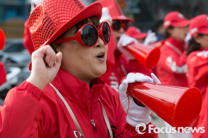 (서울=포커스뉴스) 4.13 총선 공식선거운동이 시작된 31일 오전 서울 구로구 구로디지털단지역 인근 한 대형마트 앞에서 강요식 새누리당 구로을 후보 선거운동원들이 지지를 호소하고 있다.