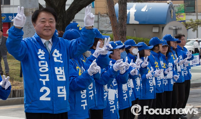 (청주=포커스뉴스) 20대 국회의원 선거운동이 시작된 31일 오전 충북 청주시 상당공원사거리에서 한범덕 후보가 지지를 호소하고 있다.