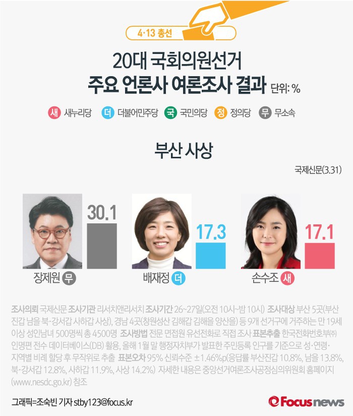 | △ [그래픽] 4.13총선 부산 사상 여론조사 결과 |
