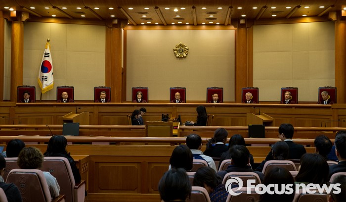 (서울=포커스뉴스) 23일 오후 서울 종로구 헌법재판소 대심판정에서 헌법재판관들이 성매매알선 등 행위의 처벌에 관한 법률(성매매특별법) 제21조 제1항에 대한 위헌성을 심판하고 있다. 헌법재판소는 성매매특별법에 대해 재판관 6대3 의견으로 합헌 결정했다.