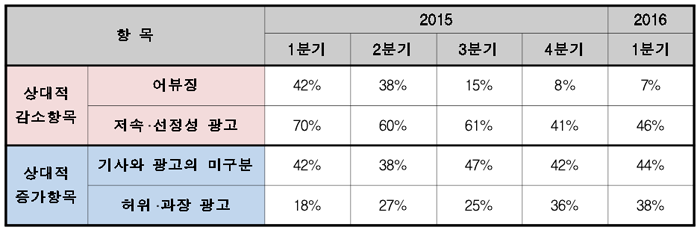 기사‧광고의 미구분, 허위‧과장 광고의 비중은 상대적으로 늘어