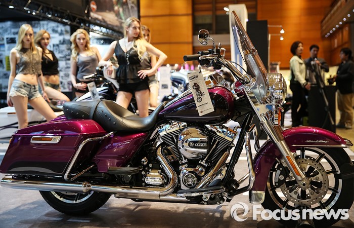 (서울=포커스뉴스) 31일 오전 서울 강남구 코엑스 D홀에서 열린 '2016 서울 모터사이클쇼' 에 할리데이비슨 부스의 모델들이 포즈를 취하고 있다.