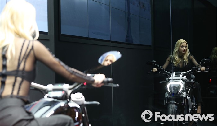 (서울=포커스뉴스) 31일 오전 서울 강남구 코엑스 D홀에서 열린 '2016 서울 모터사이클쇼' 에 참여한 두카티 부스의 한 모델이 포즈를 취하고 있다.