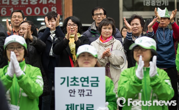 (서울=포커스뉴스) 총선 선거운동이 공식적으로 시작된 31일 오후 유권자들이 서울 영등포구 여의도백화점 앞에서 김종구 국민의당 영등포을 후보 선거운동을 지켜보고 있다.