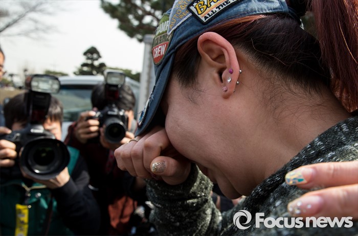 (서울=포커스뉴스) 헌법재판소의 자발적 성매매 처벌 규정 합헌 결정이 내려진 23일 오후 서울 재동 헌법재판소 앞에서 한터 관계자가 기자회견 후 눈물을 흘리고 있다.
