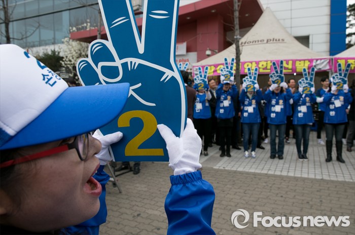(안산=포커스뉴스) 20대 총선 공식선거 운동이 시작된 31일 오후 경기도 홈플러스 안산고잔점 앞에서 열린 더불어민주당 안산 집중유세에 참여한 선거운동원들이 지지를 호소하고 있다.