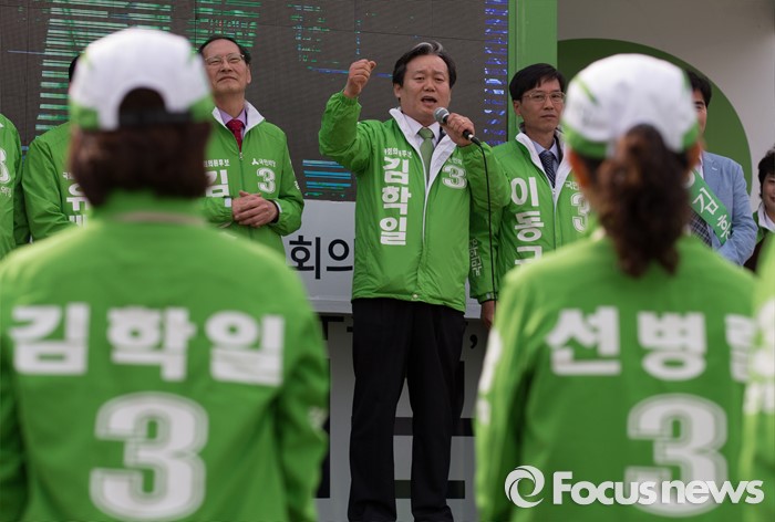(대전=포커스뉴스) 31일 오후 대전 서대전역광장에서 열린 대전 국민의당 국회의원 후보자 출범식에서 후보자들이 지지를 호소하고 있다.