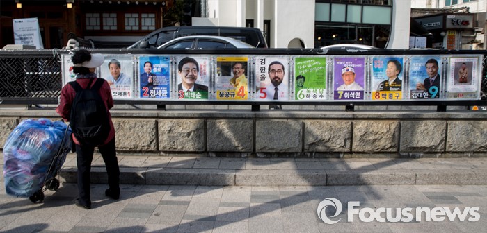 (서울=포커스뉴스) 4·13 총선의 본격적인 선거운동이 시작된 31일 오후 서울 종로구 경복궁역에 부착된 선거벽보를 한 시민이 살펴보고 있다.