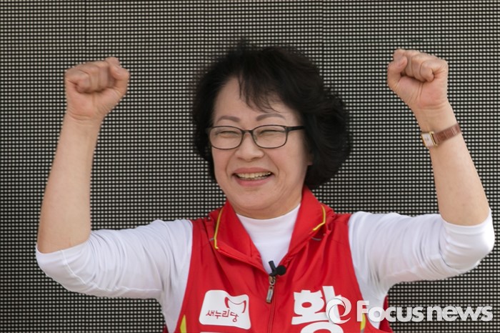 (서울=포커스뉴스) 4.13 총선 공식선거운동이 시작된 31일 오후 서울 용산구 후암시장 앞에서 황춘자 용산 후보가 유세를 하고 있다.
