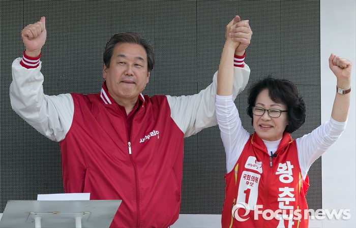| △ 두 손 높이 든 김무성·황춘자 |