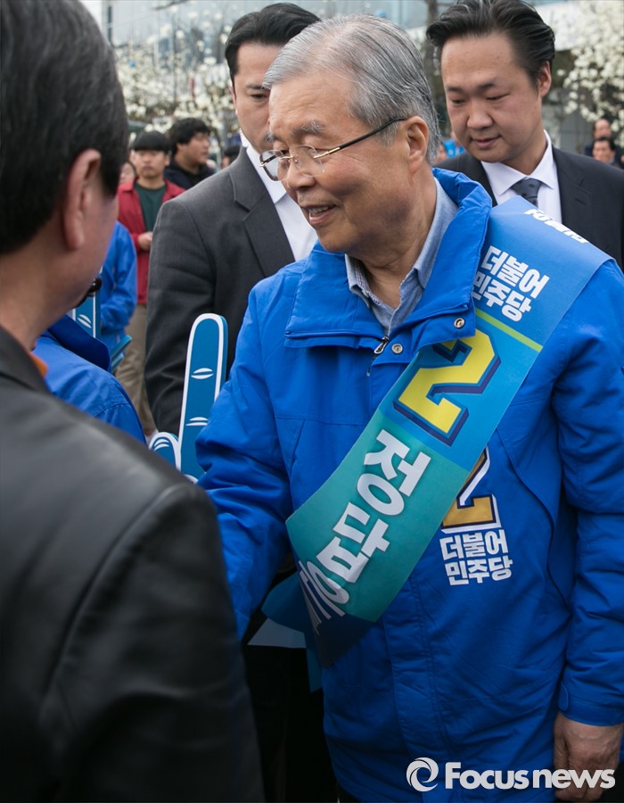 (안산=포커스뉴스) 20대 총선 공식선거 운동이 시작된 31일 오후 경기도 홈플러스 안산고잔점 앞에서 안산 집중유세를 마친 김종인 더불어민주당 비대위 대표 겸 선대위원장이 시민들과 인사하며 지지를 호소하고 있다.