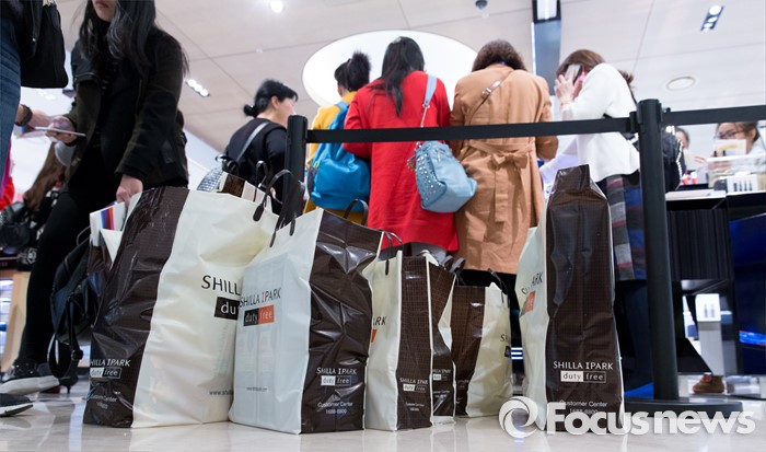 (서울=포커스뉴스) 31일 오후 서울 용산구 신라아이파크면세점을 찾은 중국 아오란 그룹 임직원들이 쇼핑을 하고 있다.