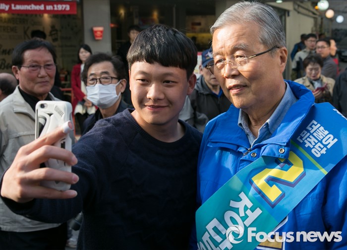 | △ 시민과 셀카 찍는 김종인 대표 |