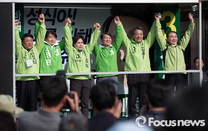 (서울=포커스뉴스) 총선 선거운동이 공식적으로 시작된 31일 오후 안철수 국민의당 상임공동대표(왼쪽 네번째)가 서울 관악구 관악플라자 앞에서 김성식 관악갑 후보(왼쪽 다섯번째) 지원 유세를 하고 있다.
