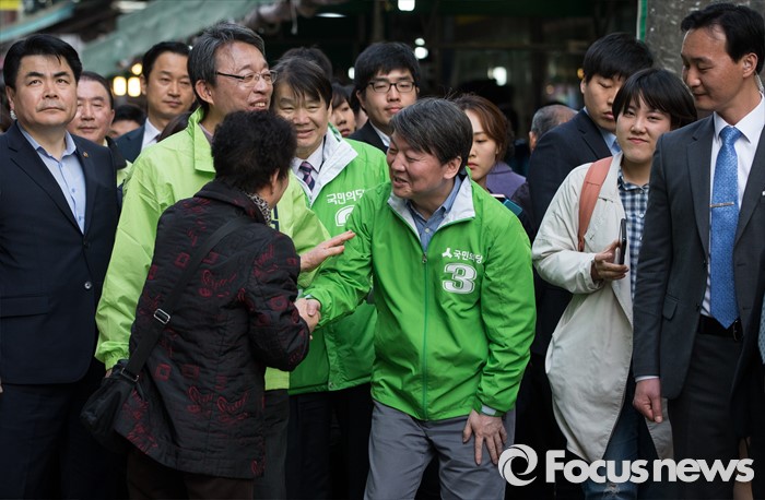 (서울=포커스뉴스) 총선 선거운동이 공식적으로 시작된 31일 오후 안철수 국민의당 상임공동대표가 서울 관악구 관악플라자 옆 시장에서 김성식 관악갑 후보 지원 유세를 하고 있다.