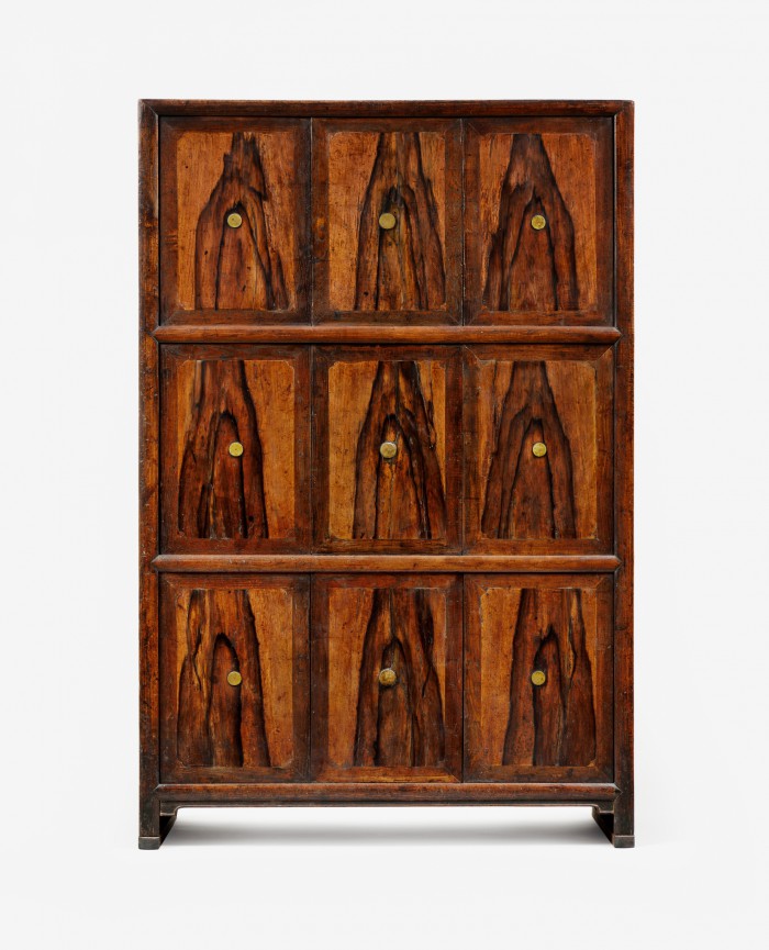 이밖에 국립민속박물관이 발간한 '목가구의 수종식별과 연륜연대' 자료집(2004년)을 기반으로 가구재로 사용된 나무의 판재 표본과 수종 표본 및 현미경으로 나무의 조직을 들여다보는 체험공간도 마련했다.'목가구, 나무의 이치木理를 담다'전에 전시된 삼층책장.<사진제공=국립민속박물관>'목가구, 나무의 이치木理를 담다'전에 전시된 서랍장.<사진제공=국립민속박물관>