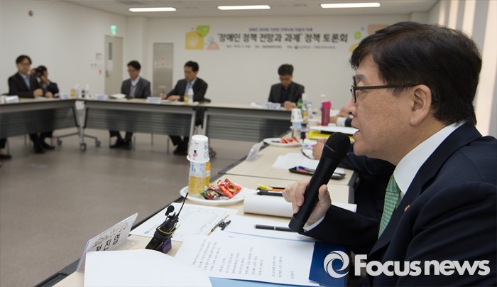 (세종=포커스뉴스) 정진엽 보건복지부장관이 1일 오전 세종시 종촌종합복지센터 대회의실에서 '장애인정책의 전망과 과제'라는 주제로 열린 정책 토론회에 참석해 인사말을 하고 있다.
