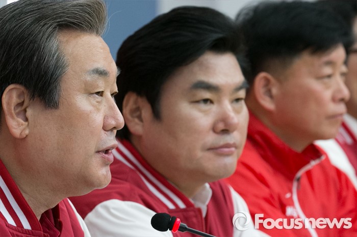 (수원=포커스뉴스) 김무성(왼쪽) 새누리당 대표가 1일 오전 경기도 수원시 장안구 정조로 새누리당 경기도당에서 열린 중앙선대위 회의에 참석해, 모두발언하고 있다.